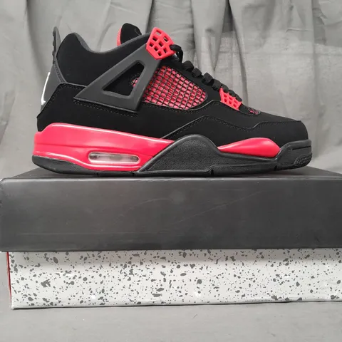 BOXED PAIR OF NIKE AIR JORDAN 4 RETRO SHOES IN BLACK/RED UK SIZE 9