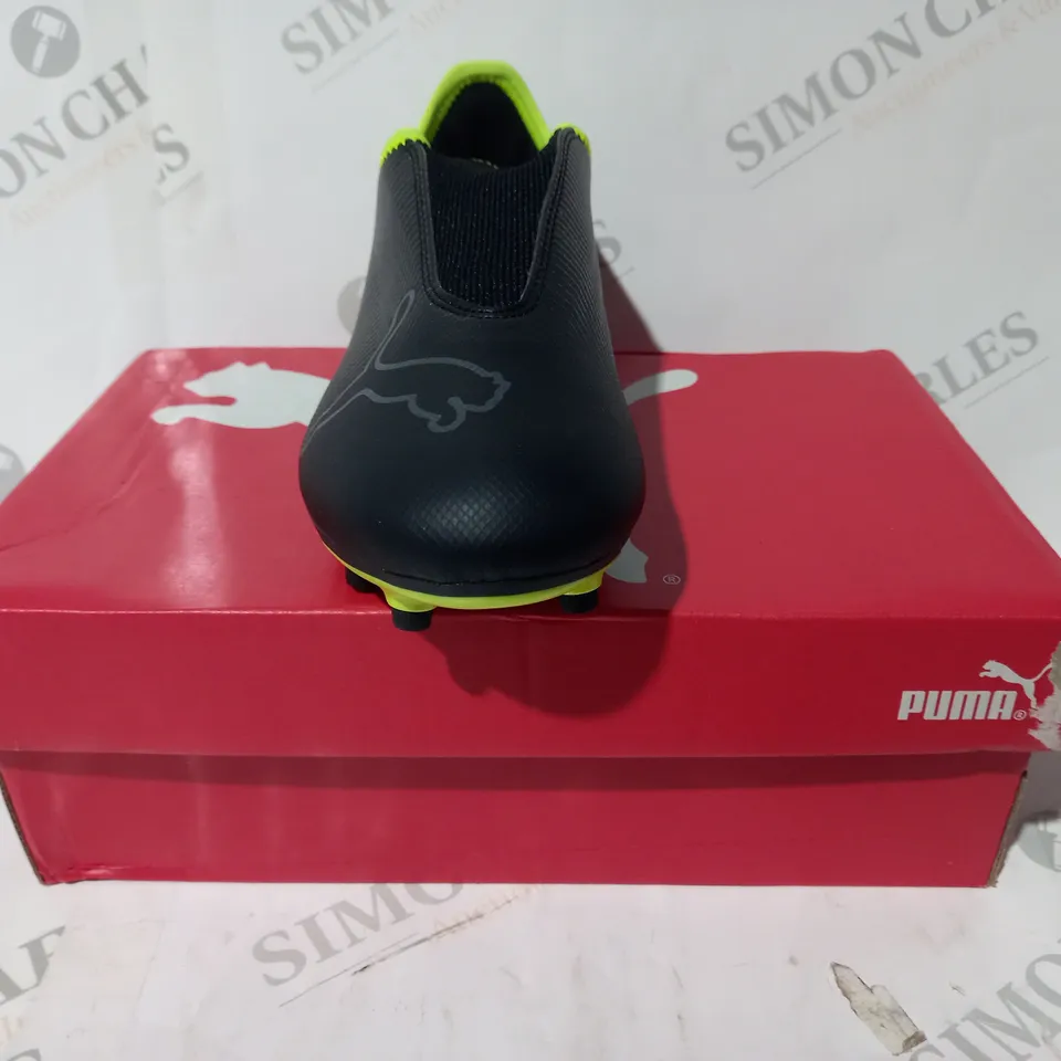 BOXED PAIR OF PUMA FINESSE KIDS FOOTBALL BOOTS IN BLACK/YELLOW UK SIZE 2