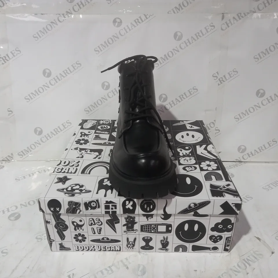 BRAND NEW BOXED PAIR OF KOI VEGAN LEATHER MORAL ALLIANCES MEN'S CROSS BOOTS IN BLACK UK SIZE 11