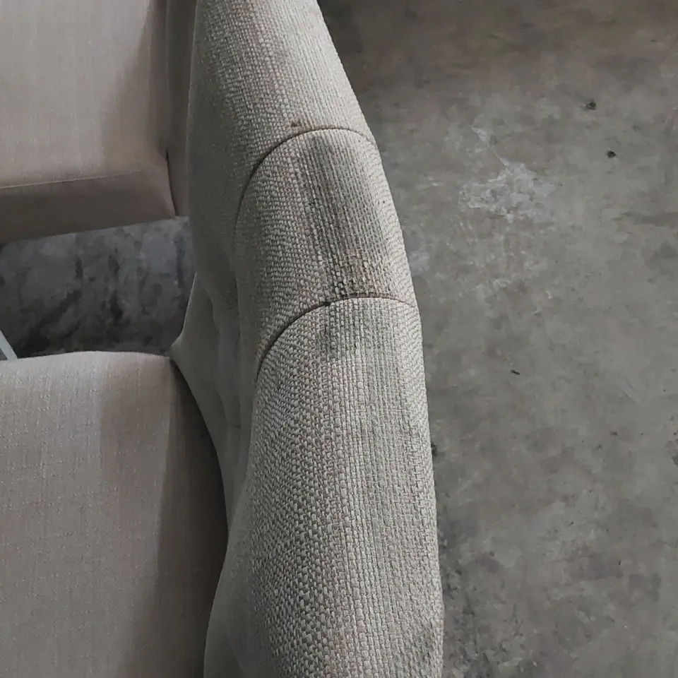 SET OF 2 BEWLEY OATMEAL FABRIC BUTTON BACK DINING CHAIRS WITH WHITE LEGS