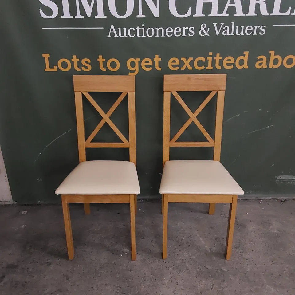 SET OF 2 KENDAL OAK DINING CHAIRS WITH IVORY SEAT PADS