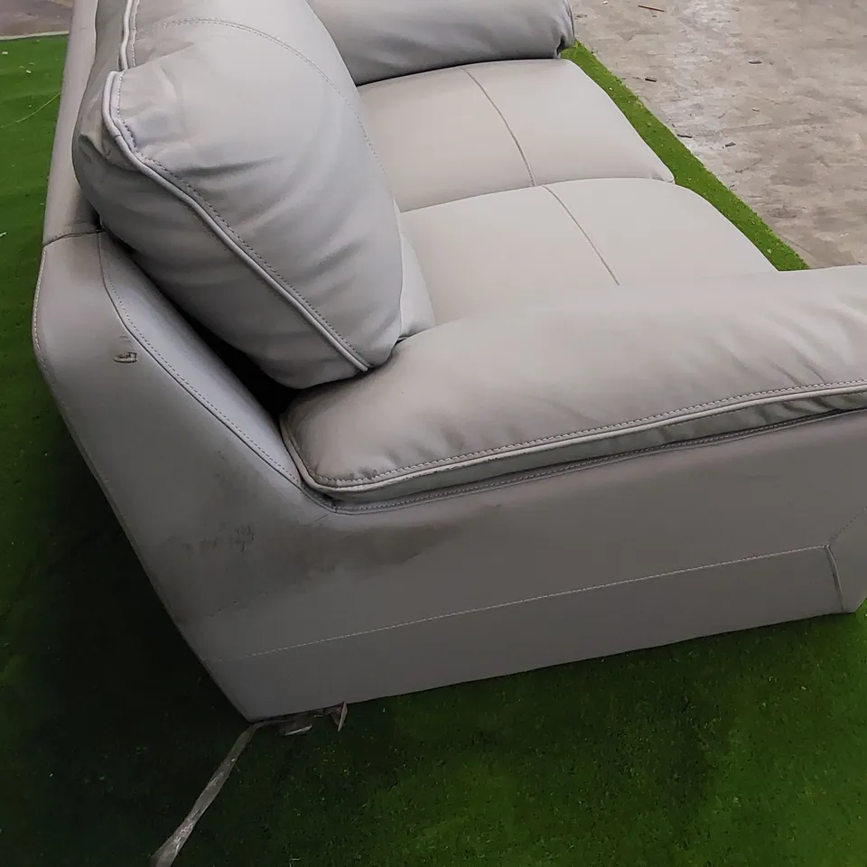 DESIGNER FAUX LEATHER 2-SEATER SOFA IN LIGHT GREY