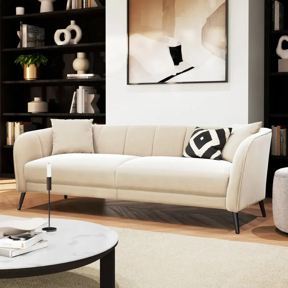 BOXED LOREN IVORY PLUSH FABRIC 3 SEATER SOFA (3 BOXES)