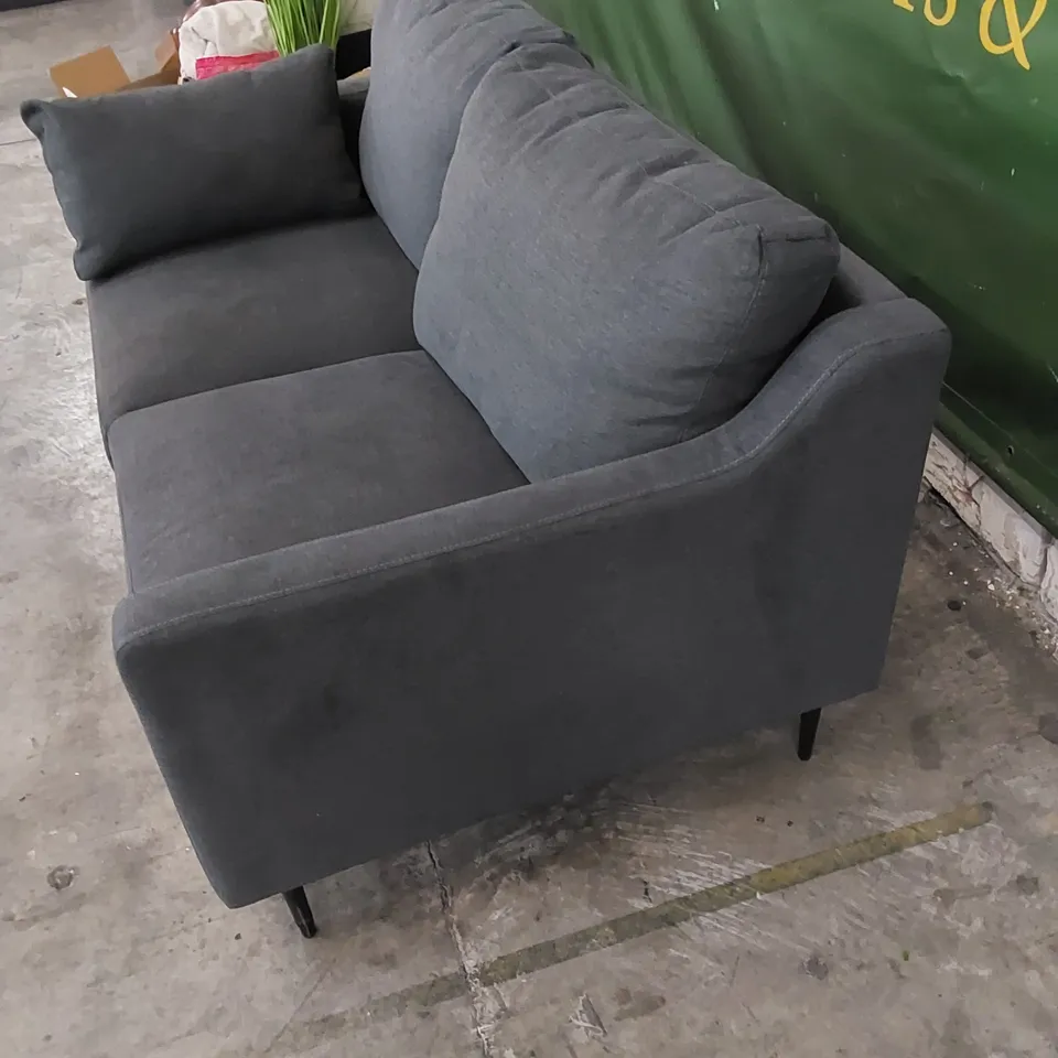 DESIGNER 2 SEATER SOFA UPHOLSTERED IN CHARCOAL FABRIC