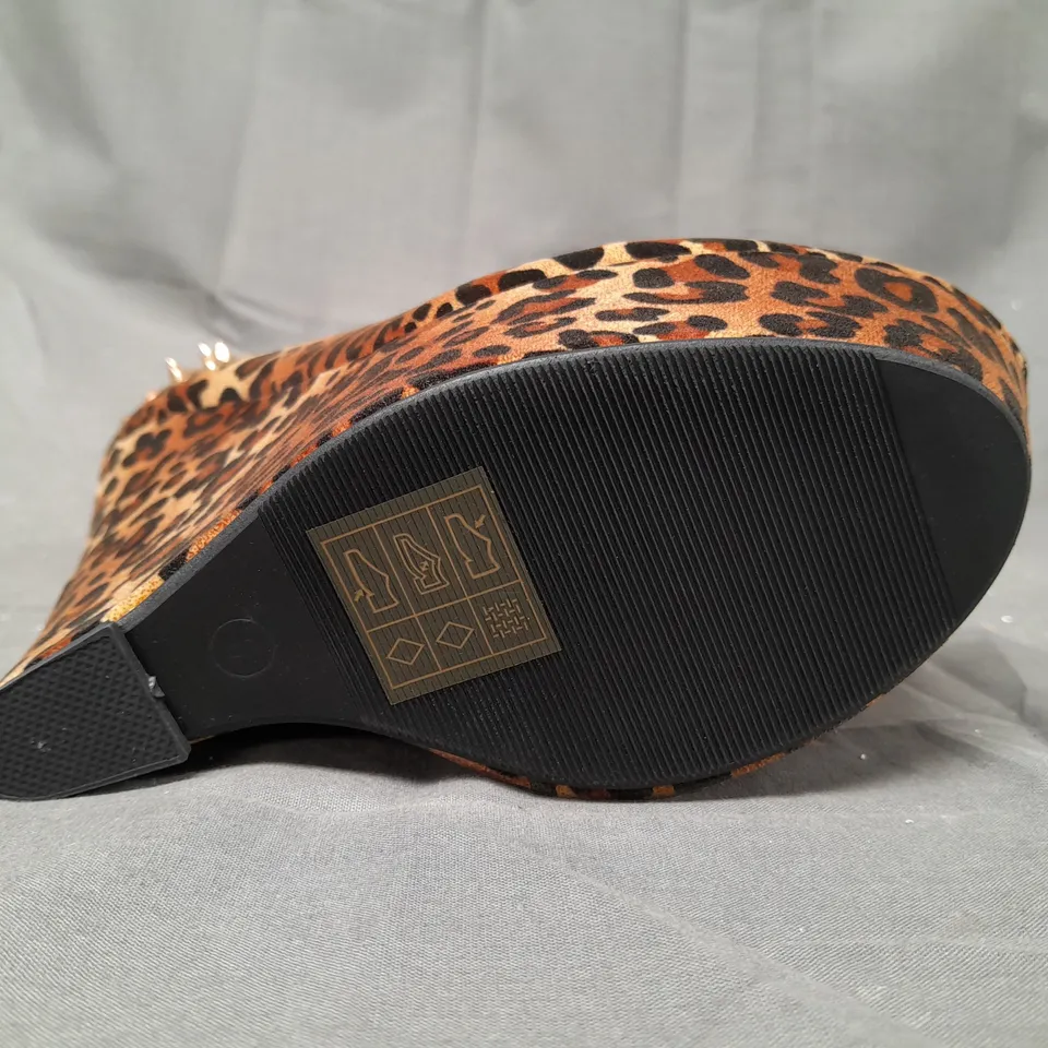 BOX OF APPROXIMATELY 10 BOXED PAIRS OF CASANDRA PLATFORM WEDGES IN LEOPARD PRINT - VARIOUS SIZES