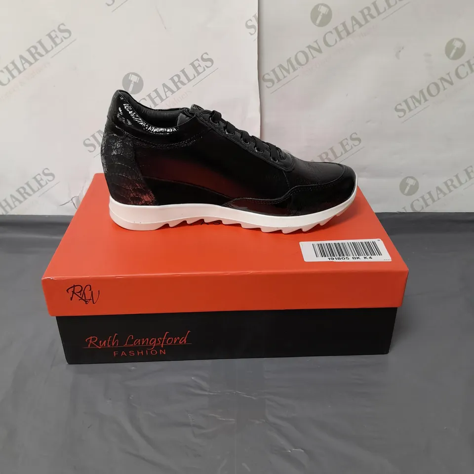 RUTH LANGSFORD LADIES BLACK PATENT WEDGE TRAINERS SIZE 4