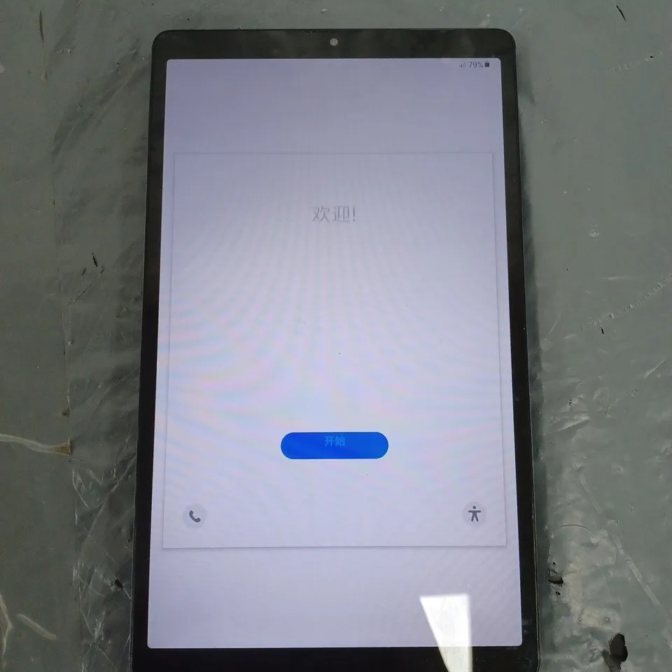 POWERS ON, TABLET RESET, MINOR COSMETIC DAMAGE, BACK SCRATCHED