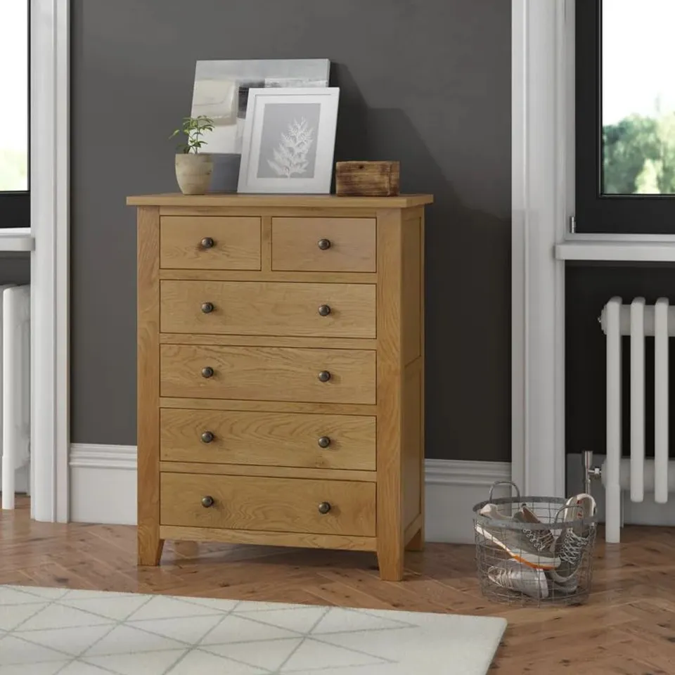 NORTH CASTLE 6-DRAWER 83CM W SOLID WOOD CHEST OF DRAWERS
