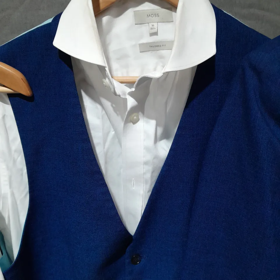 MOSS BROS 3-PIECE SLIM FIT SUIT WITH ACCESSORIES IN BLUE - JACKET UNSPECIFIED / SHIRT 16/40.5 / TROUSERS 32R