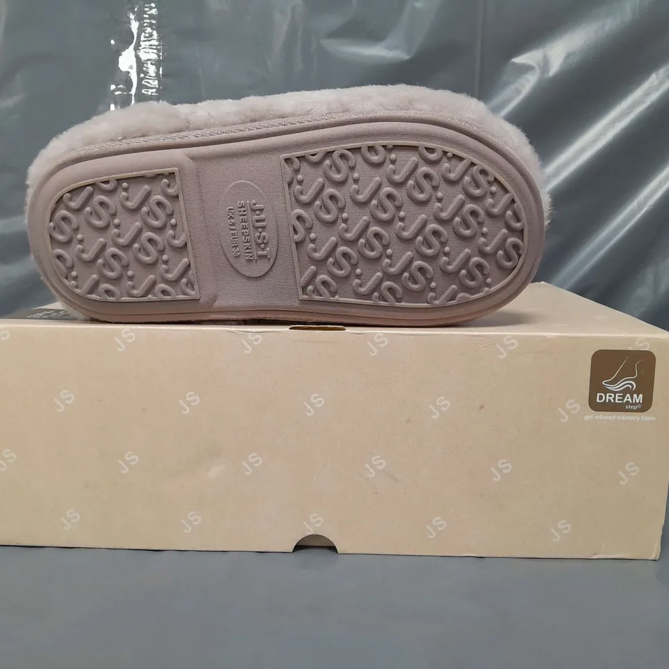 BOXED PAIR OF JUST SHEEPSKIN LADIES LOUISE SLIPPERS IN DUSTY PINK UK SIZE 5