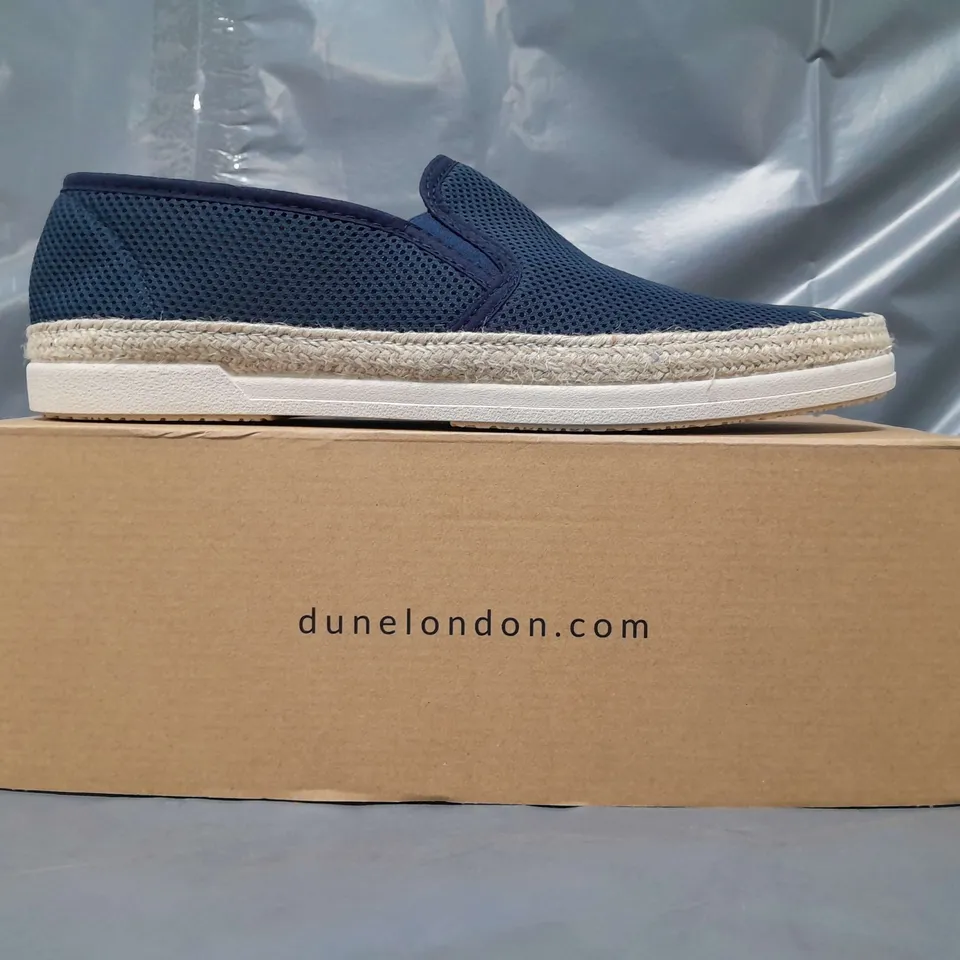 BOXED PAIR OF DUNE LONDON 165 FERDO MESH ESPADRILLE SHOES IN NAVY SIZE 9