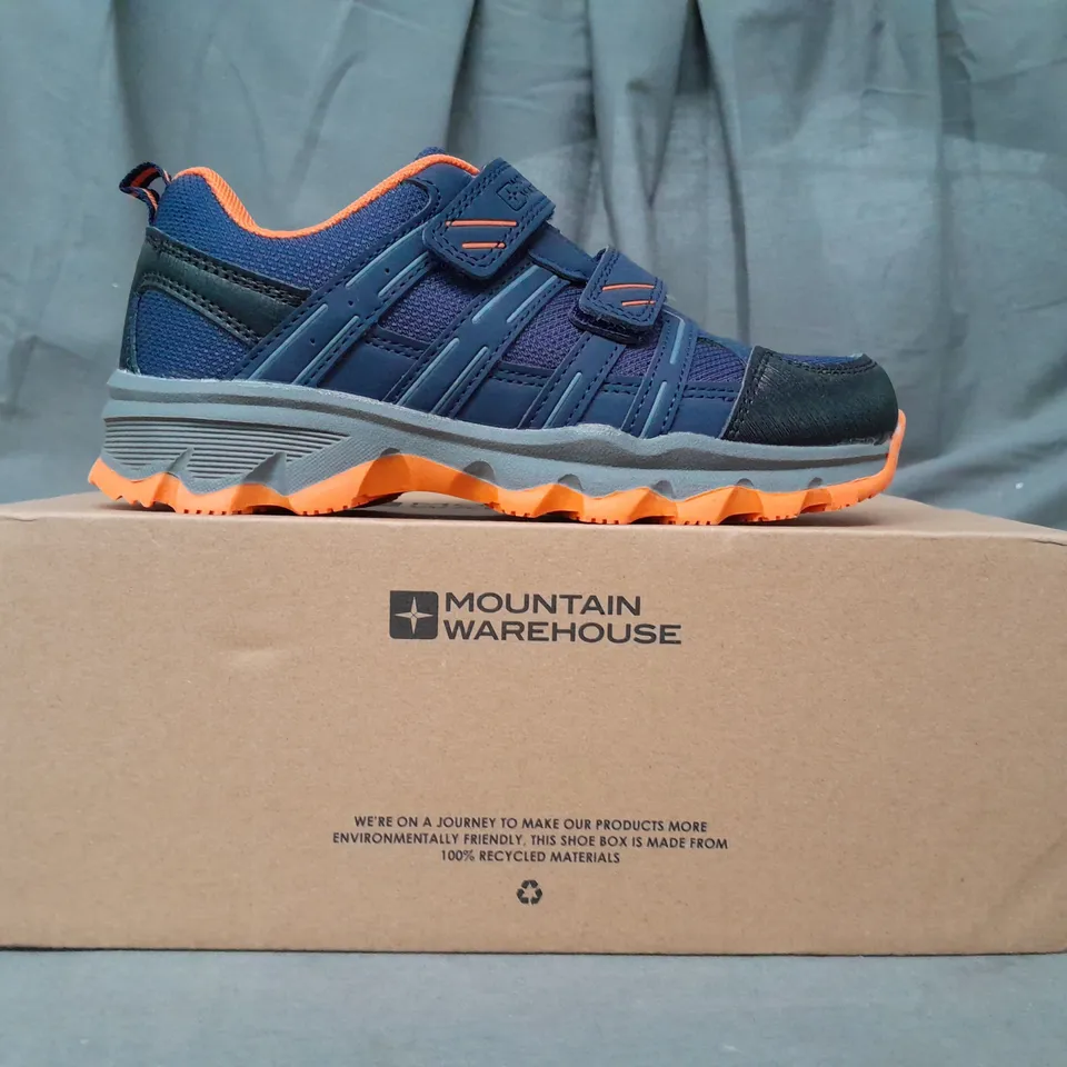 BOXED PAIR OF MOUNTAIN WAREHOUSE CANNONBALL KIDS ADAPTIVE WALKING SHOES IN DARK BLUE SIZE UK 1