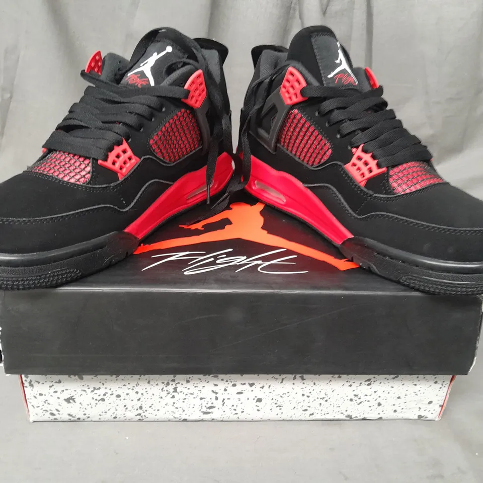 BOXED PAIR OF NIKE AIR JORDAN 4 RETRO SHOES IN BLACK/RED UK SIZE 9