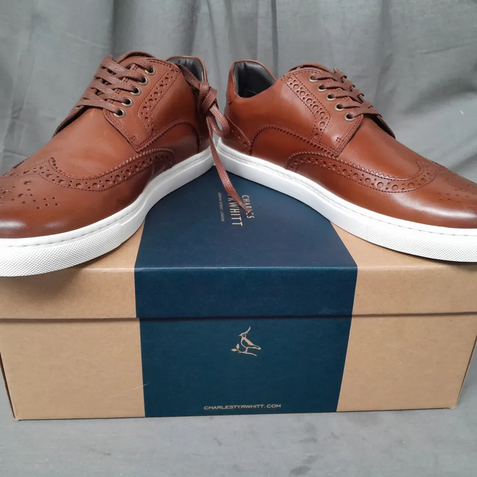 BOXED PAIR OF CHARLES TYRWHITT LEATHER BROGUE TRAINERS IN WALNUT BROWN UK SIZE 10