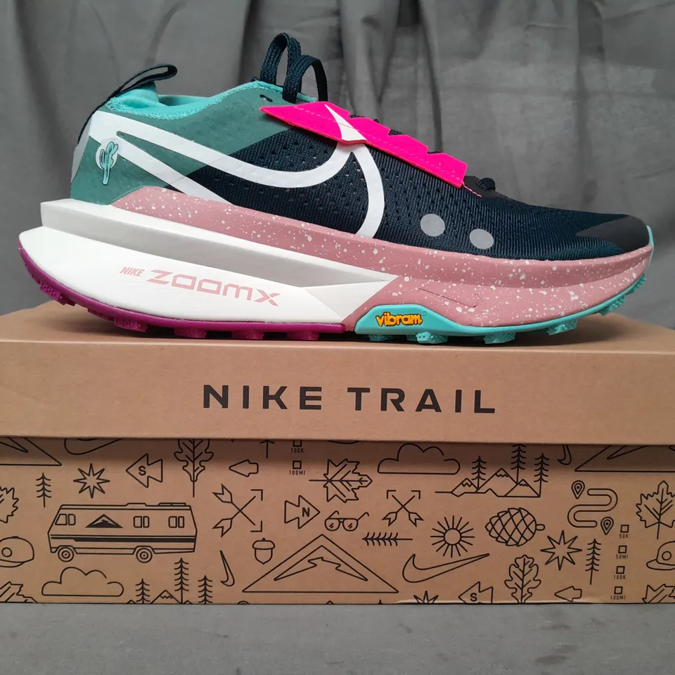 BOXED PAIR OF NIKE ZOOMX ZEGAMA TRAIL 2 SHOES IN MULTICOLOUR UK SIZE 9.5