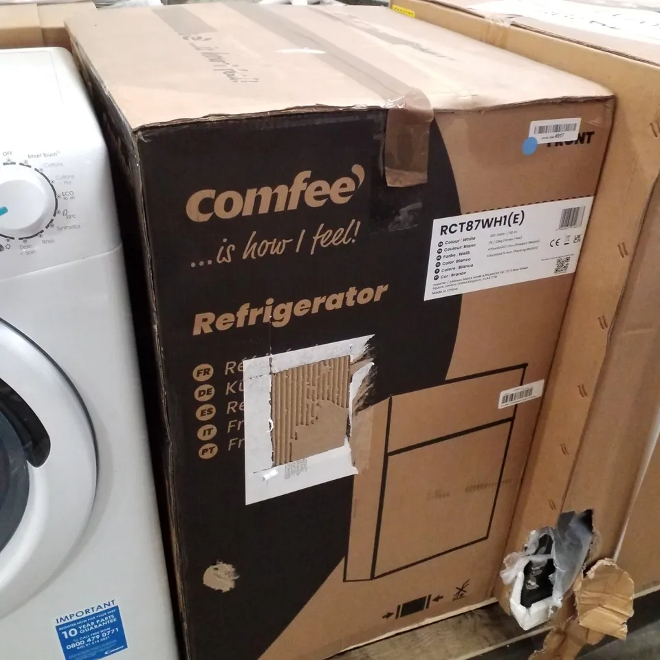 BOXED COMFEE 87L UNDER COUNTER FRIDGE FREEZER RCT124WH1(E) - UNPROCESSED RAW RETURN