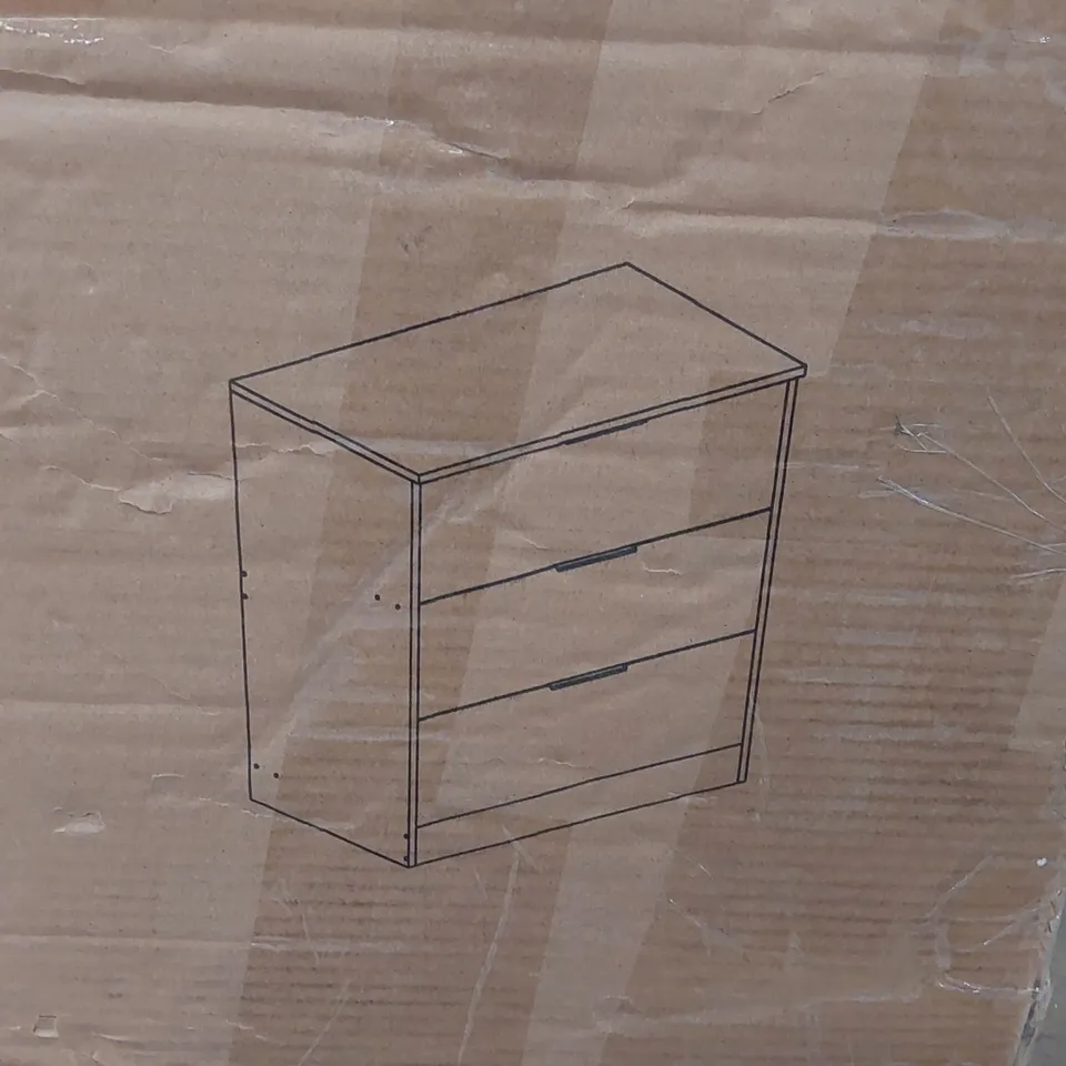 BOXED 80CM CHEST OF 3 DRAWERS COMPACT STORAGE BEDSIDE CABINET