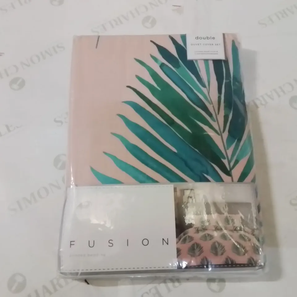 BAGGED FUSION PINK/GREEN LEAF DESIGN DOUBLE DUVET COVER SET