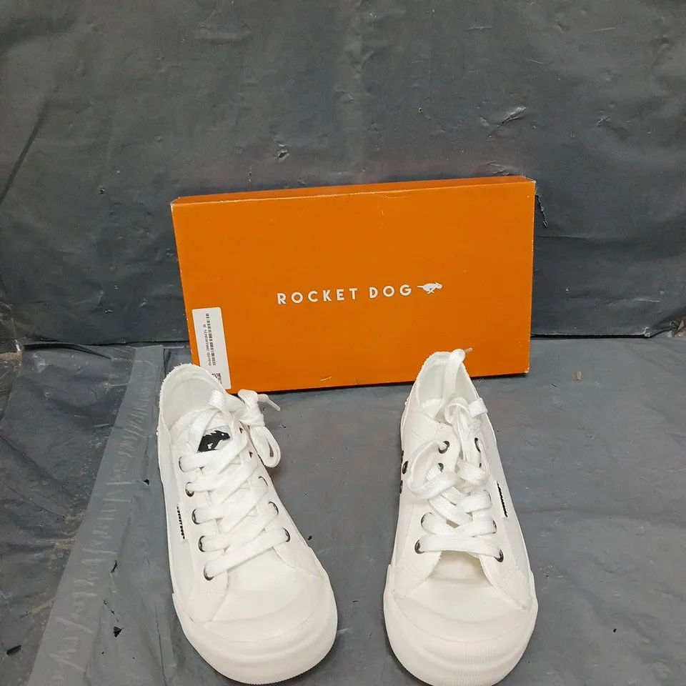 BOXED PAIR OF ROCKETDOG JAZZ WHITE CANVAS FOXING - UK 5