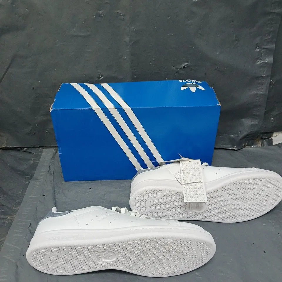 BOXED PAIR OF ADIDAS STAN SMITH WHITE/BLUE UK 9