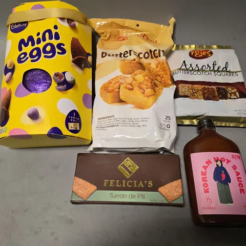 TOTE OF APPROXIMATELY 4 ASSORTED FOOD ITEMS TO INCLUDE - MATZOS , LINDOR , MONIN CARAMEL ETC