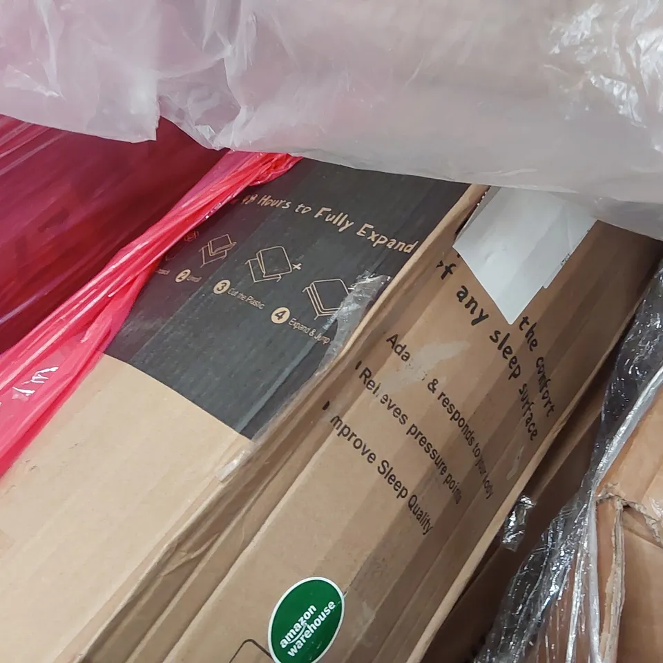 PALLET OF ASSORTED ITEMS INCLUDING: MATTRESS/TOPPER (UNSPECIFIED), CLAIR DE LUNE BABY BASKET, COAT/SHOE RACK, PLAYPEN ECT