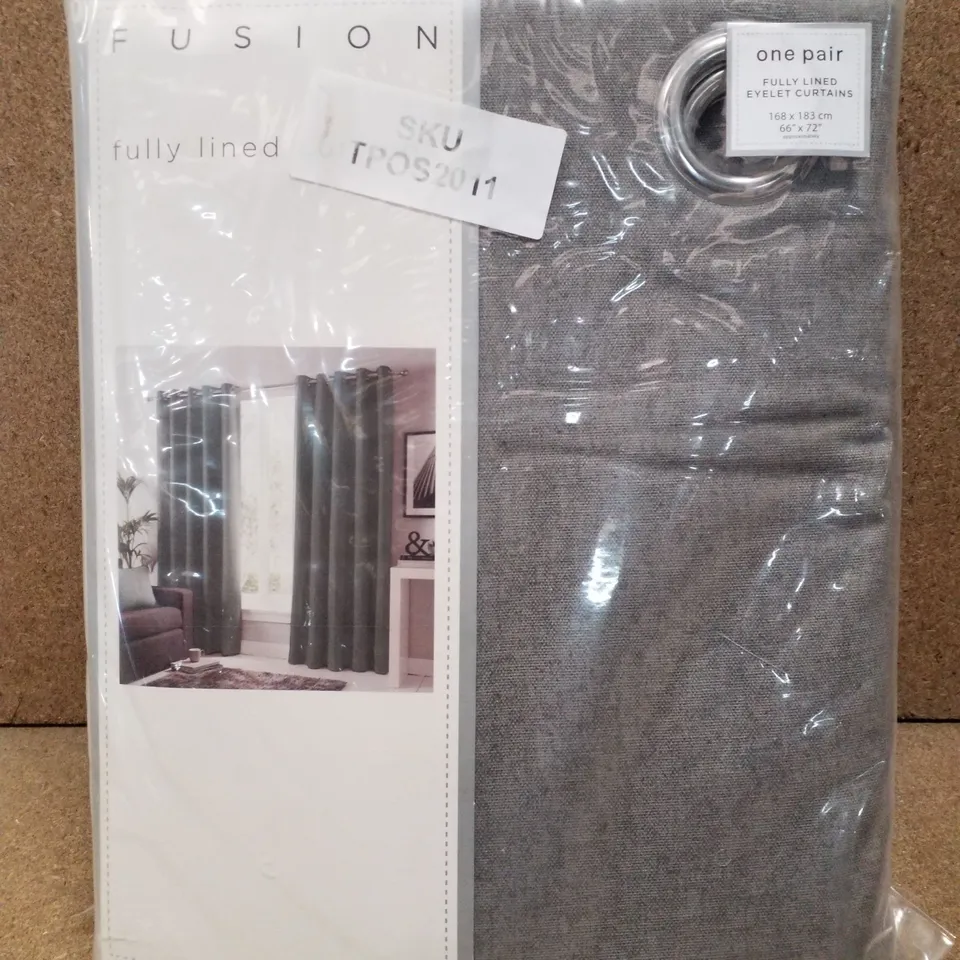 BRAND NEW FUSION SORBONNE FULLY LINED EYELET CURTAINS 168×183CM - CHARCOAL