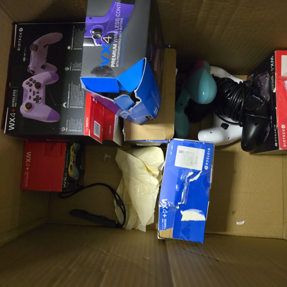 BOX OF APPROXIMATELY 8 CONTROLLERS TO INCLUDE - GIOTECK VX4 WIRED CONTROLLER , GIOTECK VX4 WIRELESS CONTROLLER