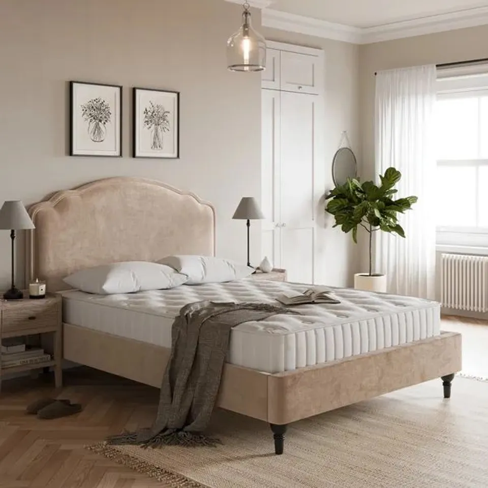 BOXED ELLA TIMELESS VELVET BED FRAME - NATURAL // SIZE: KING (2 BOXES)