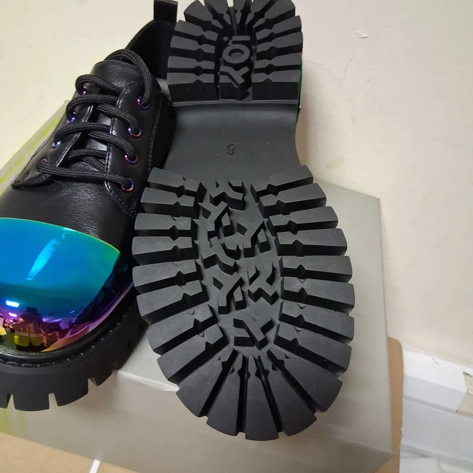BRAND NEW BOXED KOI SHELOB RAINBOW METAL TOE CAP LACE UP SHOES BLACK SIZE 6