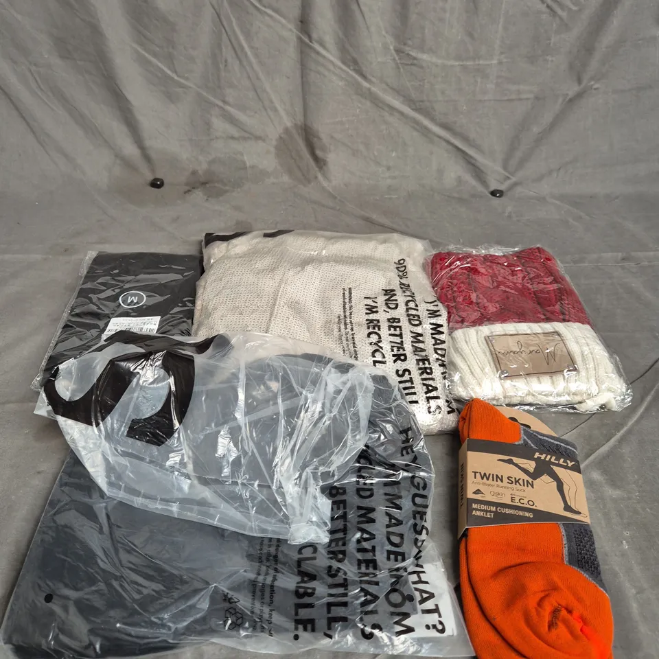 BOX OF APPROXIMATELY 20 ASSORTED CLOTHING AND FASHION ITEMS IN VARIOUS STYLES, SIZES, AND COLOURS - COLLECTION ONLY