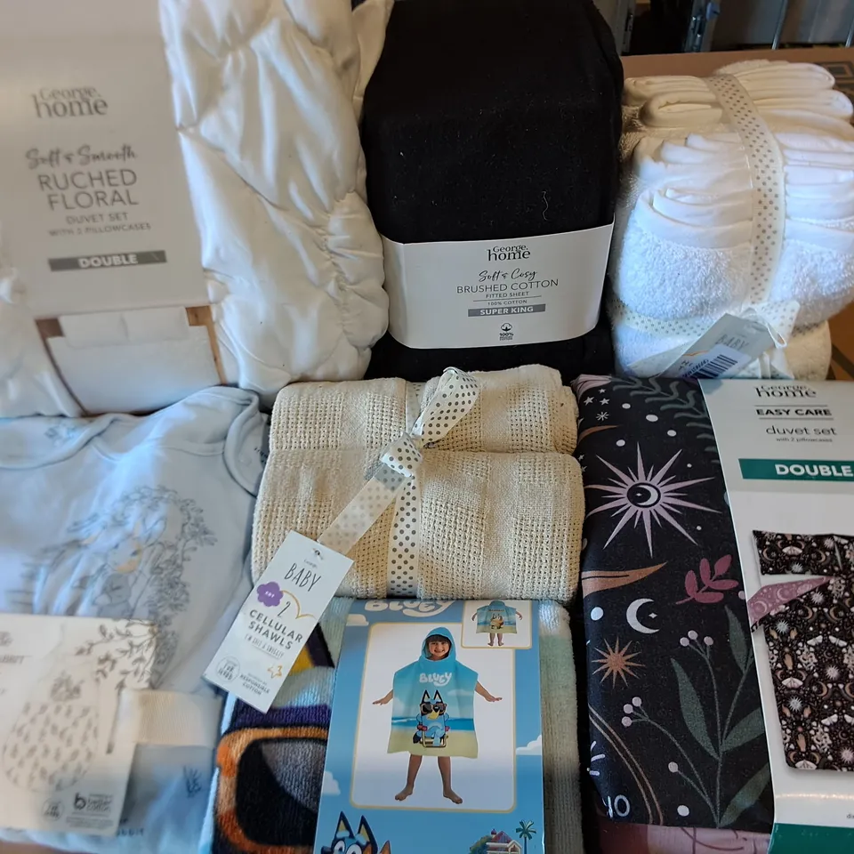 LOT OF APPROXIMATELY 15 ASSORTED BEDDING AND SOFT FURNISHING ITEMS TO INCLUDE BLUEY PONCHO, DUVET SETS AND CELLULAR SHAWLS
