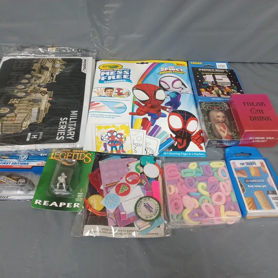 LARGE BOX OF APPROXIMATELY 20 ASSORTED TOYS AND GAMES TO INCLUDE MILITARY SERIES, CARD GAMES AND CRAYOLA