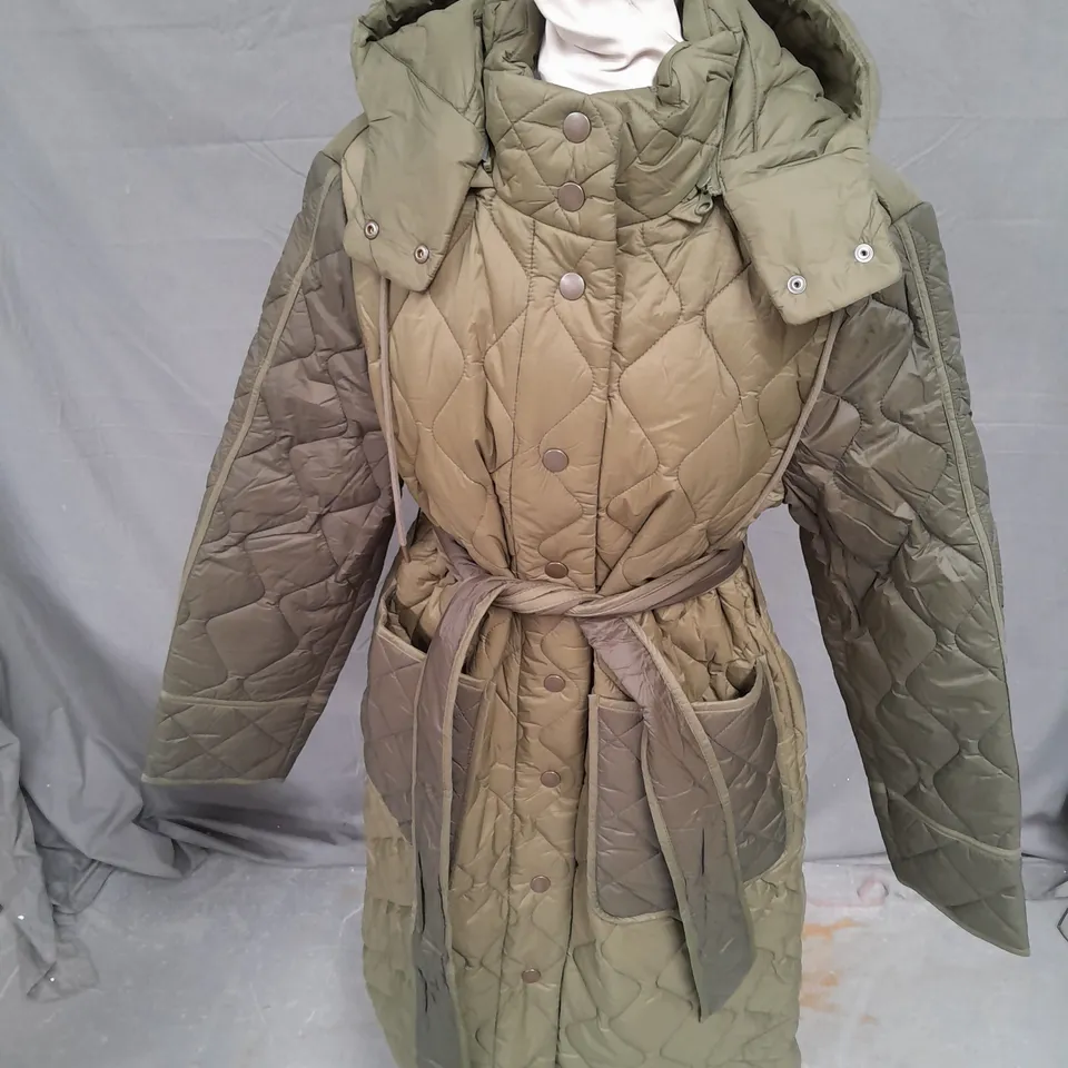 BODEN QUILTED LONG JACKET IN DARK KHAKI SIZE 14