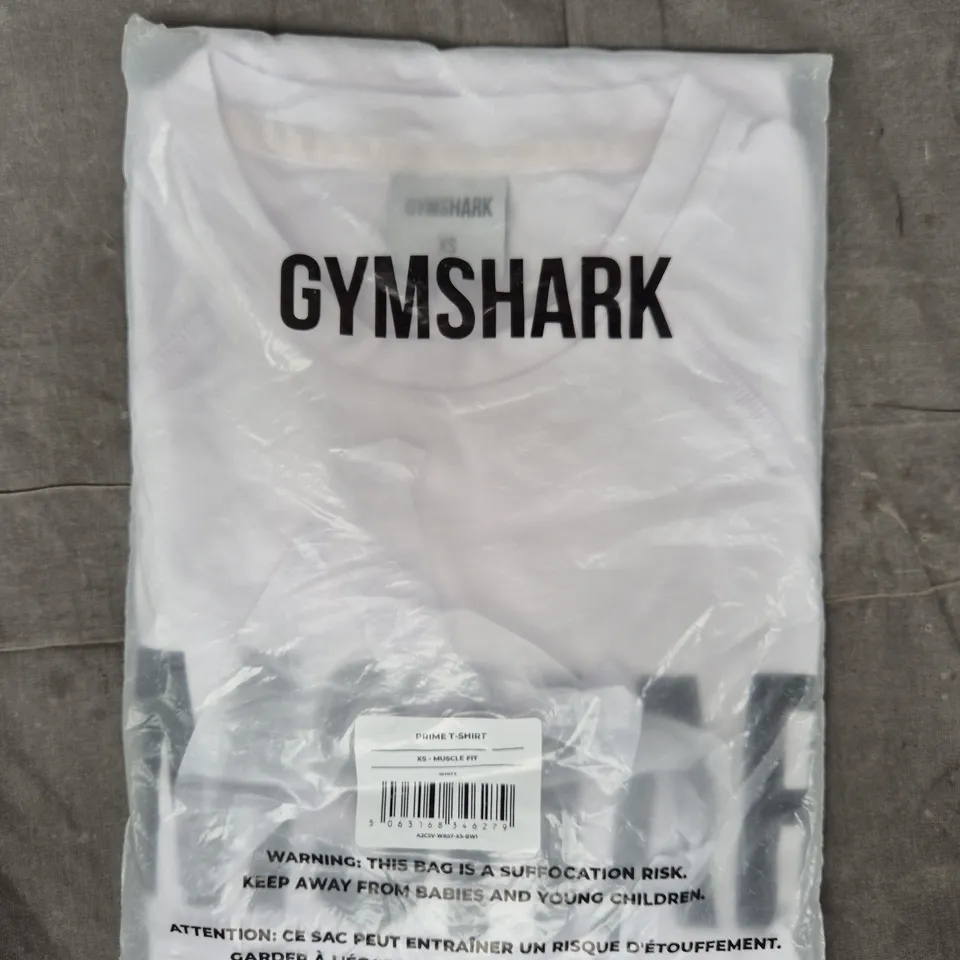 GYM SHARK MUSCLE FIT PRIME T-SHIRT IN WHITE SIZE XS