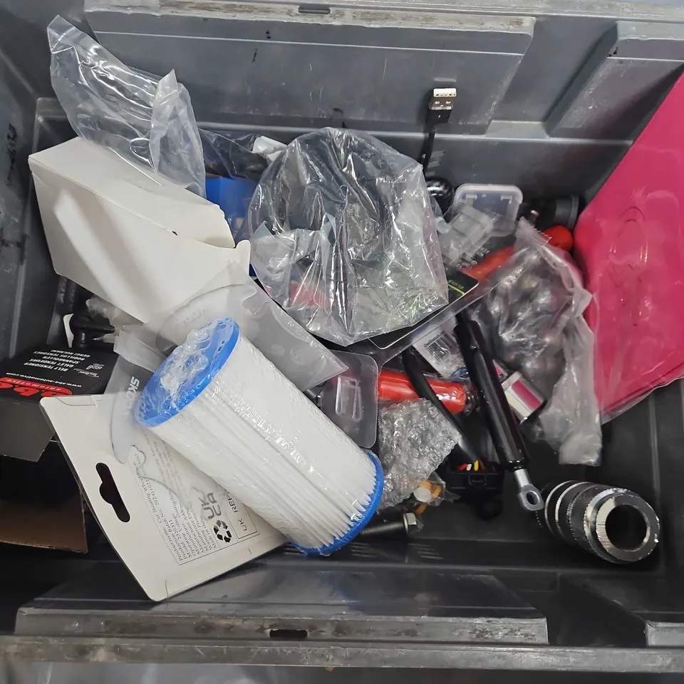BOX OF ASSORTED CAR PARTS AND ACCESSORIES TO INCLUDE - APEC BRAKE ACCESSORIES - IPHONE WIRELESS CARPLAY ADAPTER - NEILSEN BIKE REPAIR WRENCH