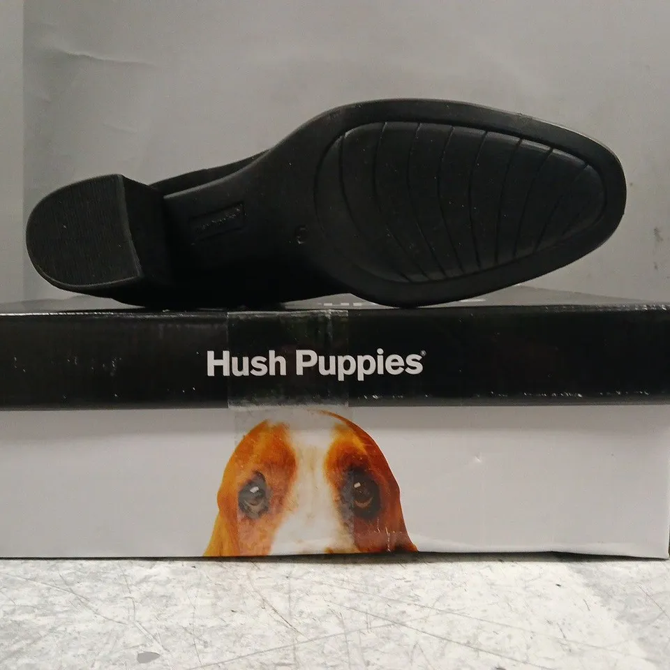BOXED PAIR OF HUSH PUPPIES OCTAVIA HEEL BOOTS IN BLACK SIZE UK 6