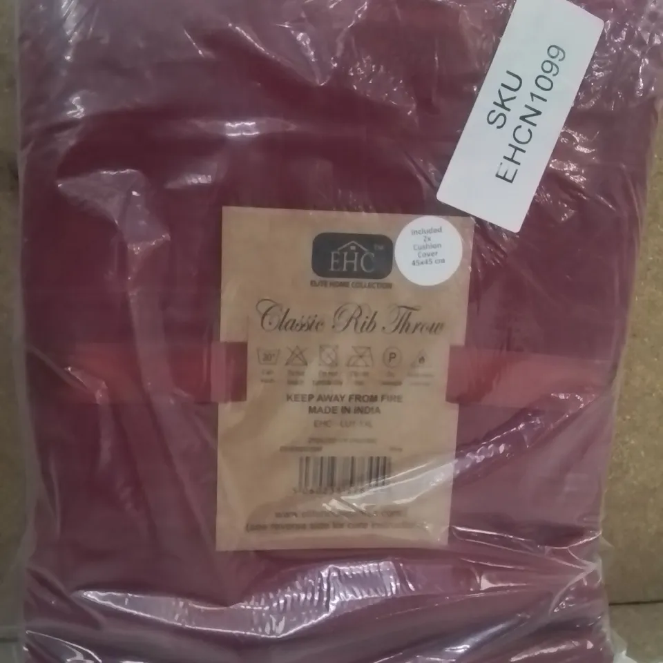 BRAND NEW ELITE HOME COLLECTION CLASSIC RIB 250 X 250CM THROW AND X2 CUSHION COVERS -RED-