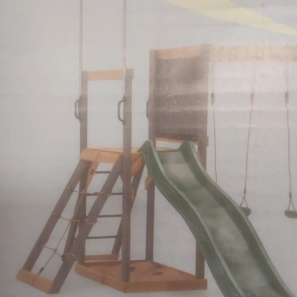 BOXED PLUM WOODEN PLAYCENTRE - TOWER PIECE ONLY, MISSING SLIDE (2 BOXES)