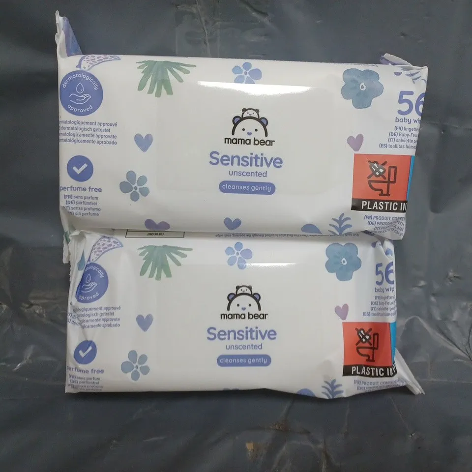 BOX OF APPROXIMATELY 18 PACKS OF MAMA BEAR SENSITIVE UNSCENTED BABY WIPES (56 WIPES PER PACK)