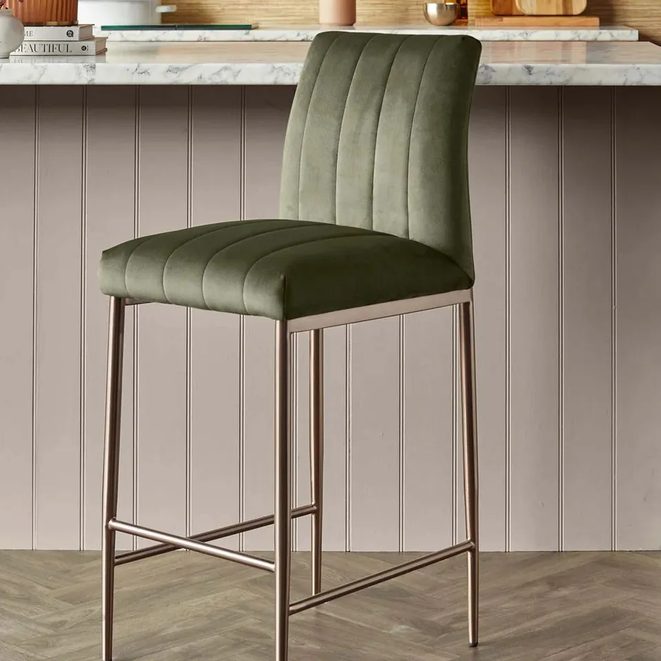 BOXED DANETTI KENDRA OLIVE GREEN VELVET BAR STOOL (1 BOX) RRP £249.99