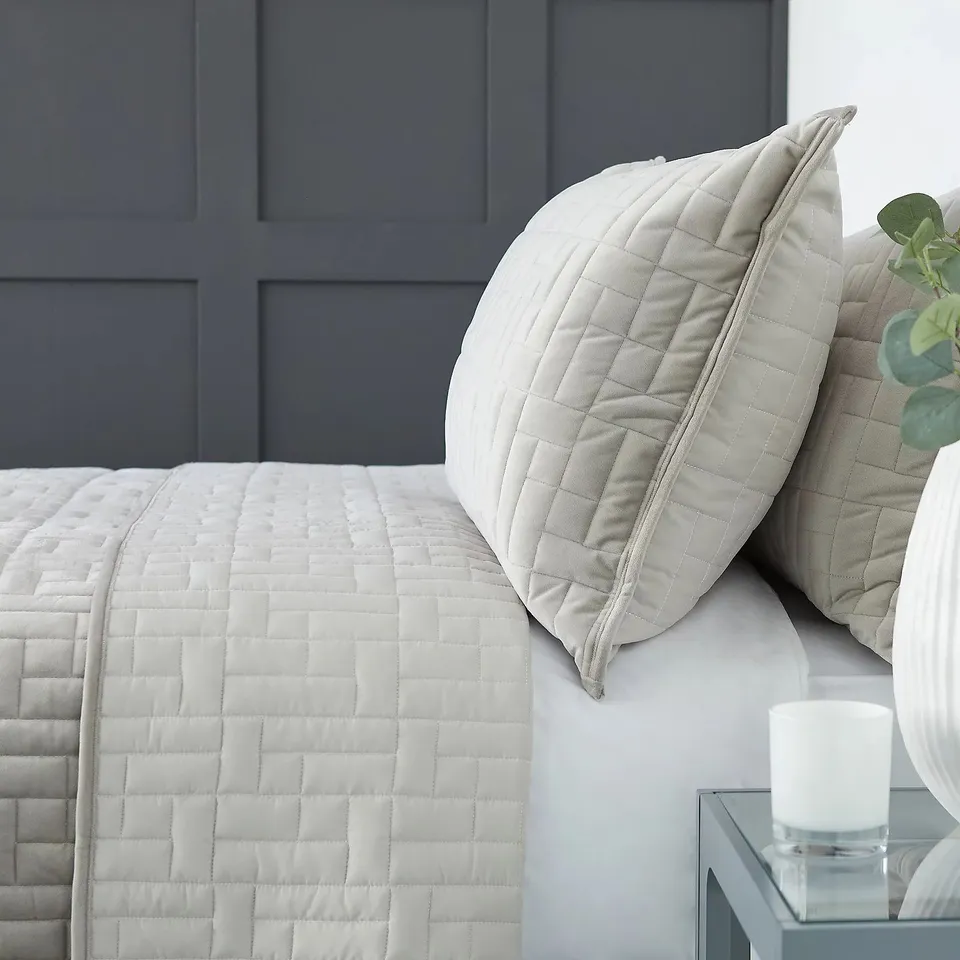 K BY KELLY HOPPEN VELVET REVERSIBLE FILLED BEDSPREAD AND SET OF 2 SHAMS IN TAUPE