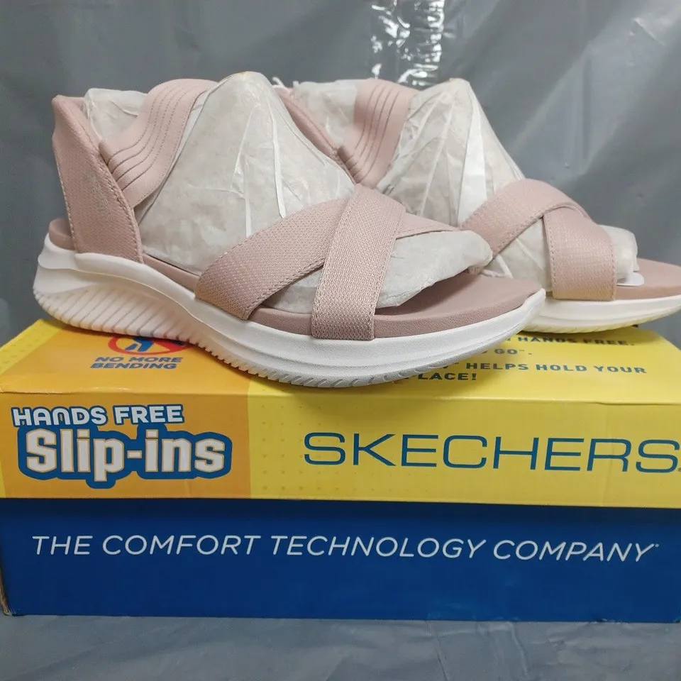 BOXED PAIR OF SKECHERS ULTRA FLEX OPEN TOE SANDALS IN BLUSH SIZE 5