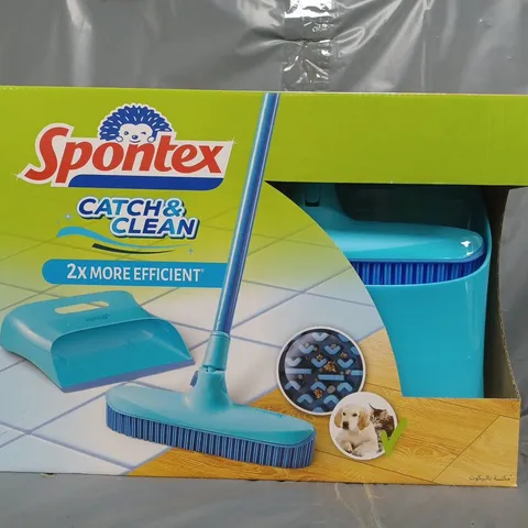 BOXED SPONTEX CATCH & CLEAN RUBBER BROOM AND DUSTPAN SET
