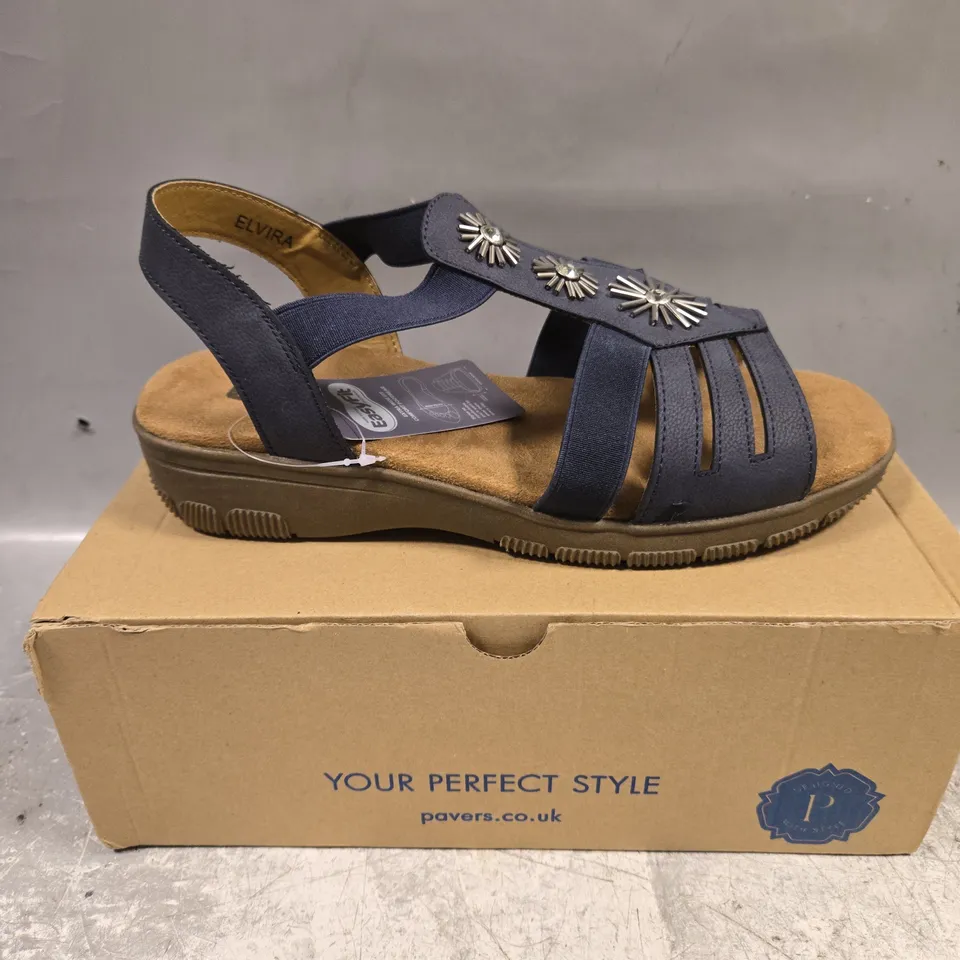 BOXED PAIR OF PAVERS ELVIRA SANDALS IN NAVY - 6