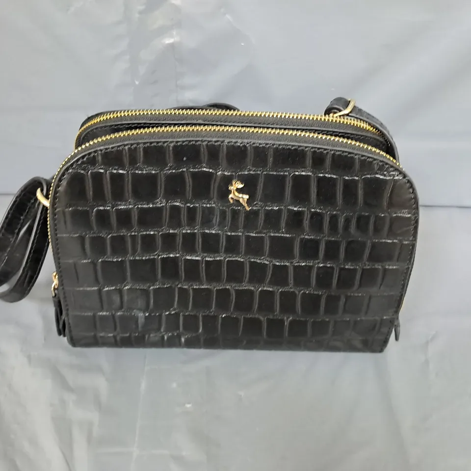 ASHWOOD CROC LEATHER SMALL HALF MOON CROSS-BODY - BLACK