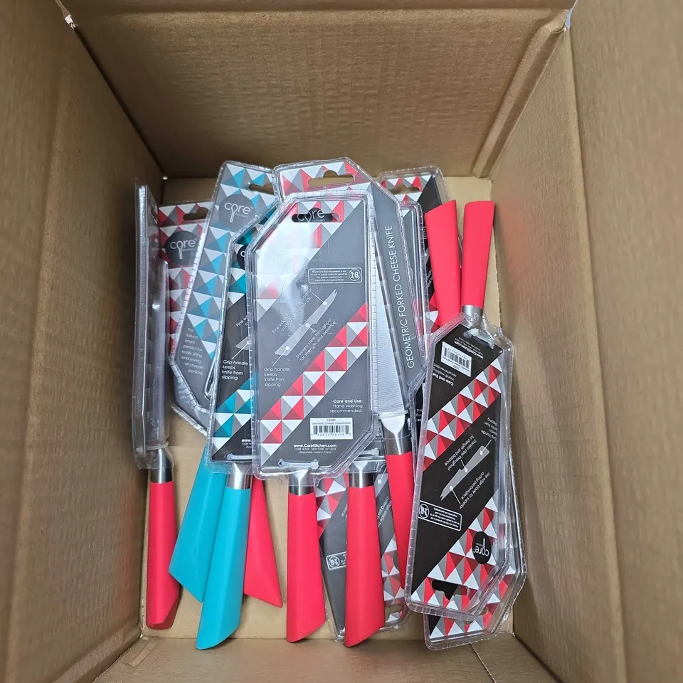APPROXIMATELY 13 CORE KITCHEN GEOMETRIC FORKED CHEESE KNIVES 4.5" BLADE 2 COLOURS