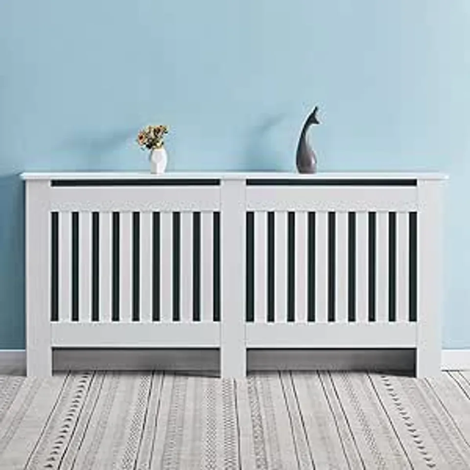 BOXED 152CM MDF RADIATOR COVER WALL CABINET WIDE WOOD SLATS VERTICAL GRILL WHITE DIY