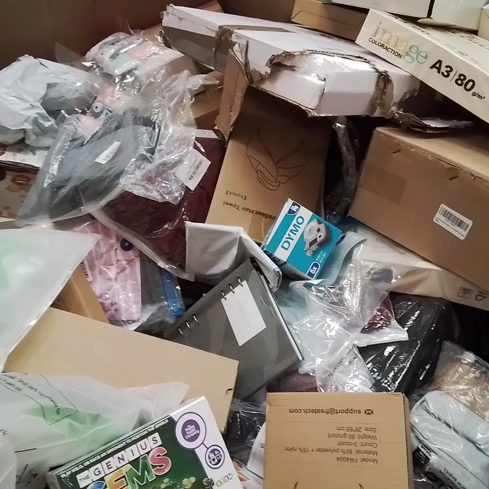 PALLET TO CONTAIN AN ASSORTMENT OF HOUSEHOLD ITEMS TO INCLUDE FOLDABLE CAMPING STOOLS, TELESCOPE CLOTHING ECT