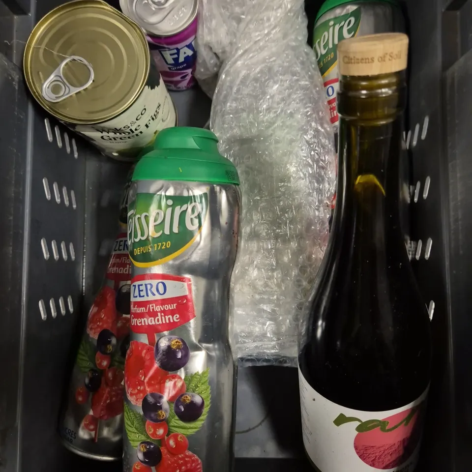 APPROXIMATELY 10 ASSORTED FOOD/DRINK PRODUCTS TO INCLUDE SIMPLY COOK KITS, OLIVE OIL, 7UP CHERRY ETC